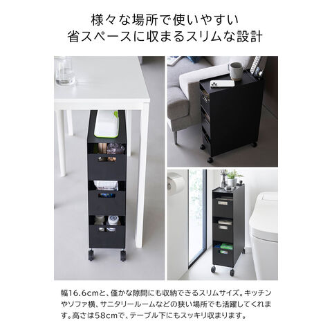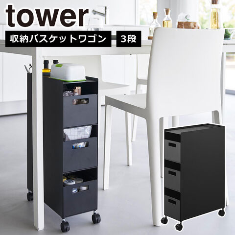 山崎実業 tower タワー 収納バスケットワゴン 3段 10016 ブラック ワゴン キャスター付き スリム キッチンワゴンyamazaki 公式 オンラインショップ 【北海道・沖縄は990円加算】yaa3149-bk