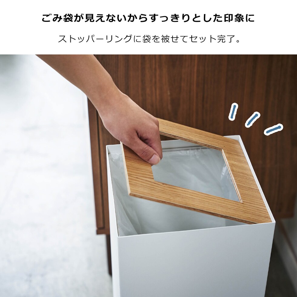 ・30Lゴミ袋がぴったりのスリムなのに大容量なゴミ箱 ・ゴミ袋をセットし、上から蓋をかぶせるので袋が外から見えません ・お部屋に納まりやすい四角いフォルム |