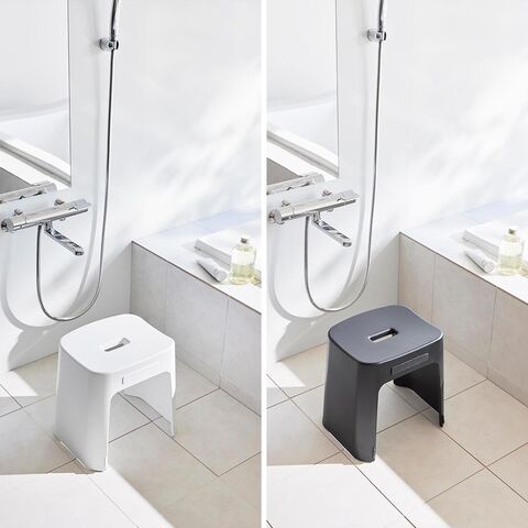 マグネットで壁面に収納! 立つ・座るの動作がしやすい、高さ26cm・32cmの風呂イスです。 使用後は、イスの背面に付いているマグネットで浴室壁面にペタッと貼り付け、浮かせて収納! 大きくて置き場所に困る風呂イスを、邪魔にならない壁面に収納することで床は広々!お風呂掃除もラクにできます。 風呂イス自体のお手入れも簡単!内側は凹凸の少ないスッキリとしたデザインなので、洗いやすく衛生的です。 浮かせているので水切れも良く、乾燥が早まりスッキリ清潔に保てます。 マグネットは埋め込み式なので壁面への色移りを防ぎます。また、収納する際、壁面をキズつけないように脚にクッションが付いています。 壁面収納以外に、浴槽のフチに脚を引っ掛けて収納も可能です。 |