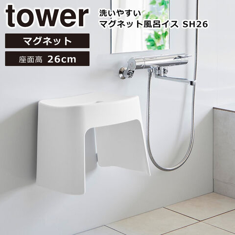 山崎実業 公式 オンラインショップ tower タワー 洗いやすいマグネット風呂イス 26cm SH26 ホワイト 1651 壁面収納 浮かせる収納 バスチェア yamazaki 【北海道・沖縄は990円加算】 yaa4103-wh