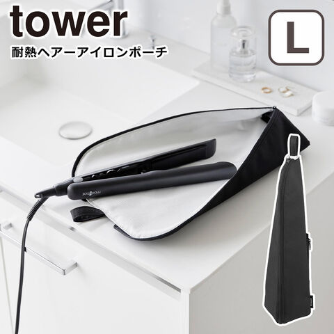 山崎実業 tower タワー 耐熱ヘアーアイロンポーチ タワー L ブラック 1384 ヘアアイロン ケース 収納 公式 オンラインショップ【北海道・沖縄は990円加算】yaa4108-bk