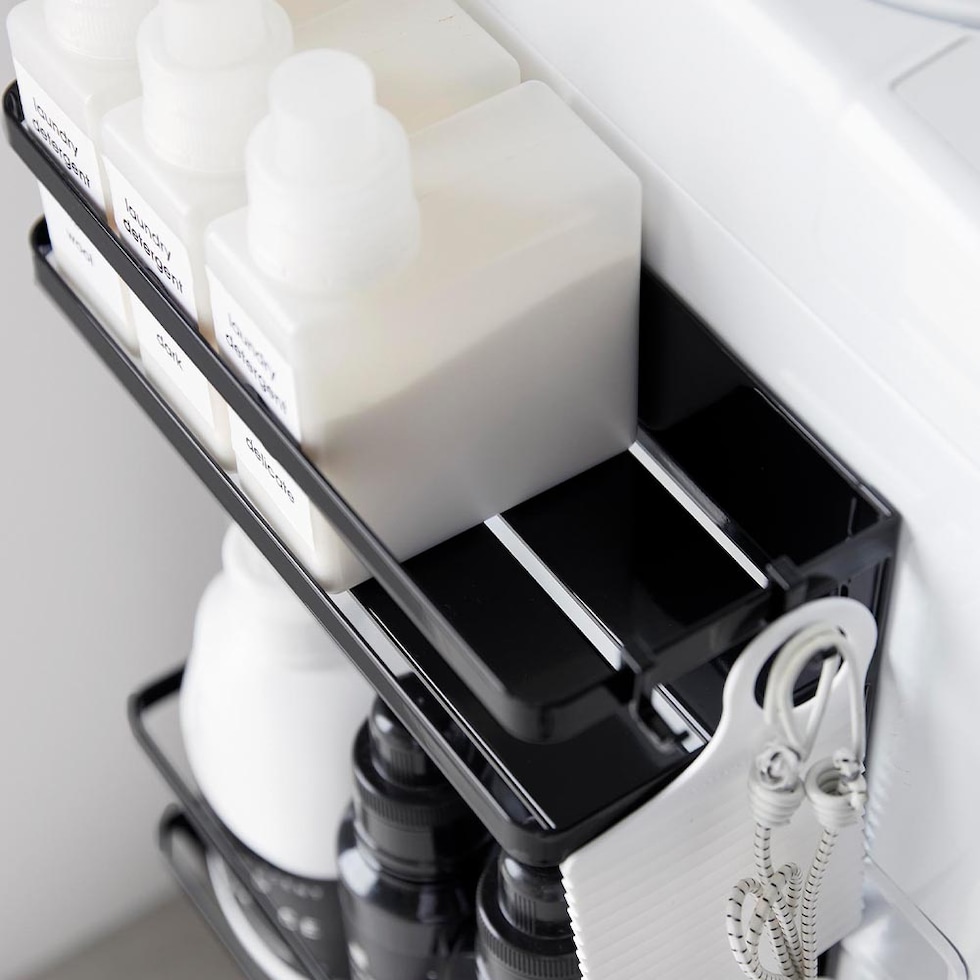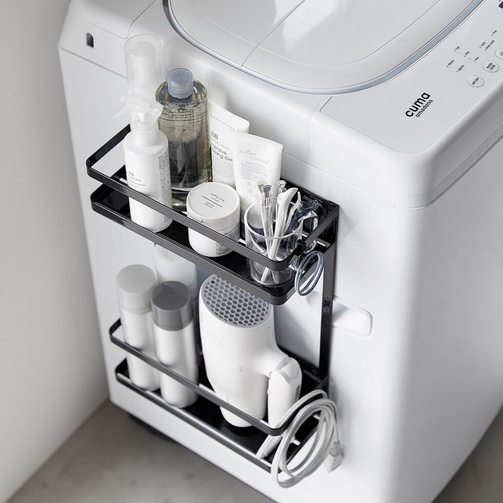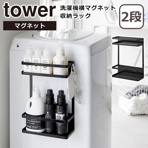| 洗濯機横マグネット収納ラック タワー 2段 ブラック |