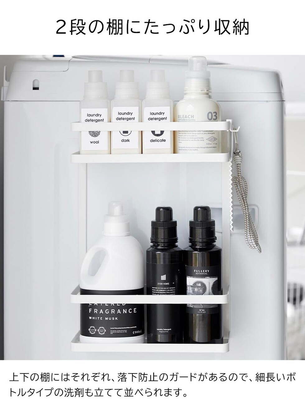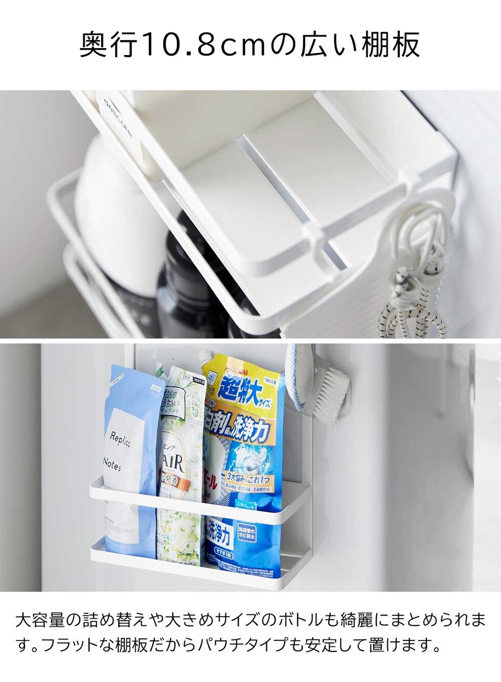 ランドリー周辺グッズをまとめて一括収納できるマグネット設置の2段ラック 洗濯機の側面を利用してマグネットで簡単に取り付けられるラックです。 上下段それぞれに、落下防止のガードが付いており、細長い洗剤ボトルなどを立てて並べて整頓できます。棚は奥行10.8cmとワイドな設計。大容量の詰め替えパックも収まります。 たっぷり収納できる2段式だから、洗面スペースで収納しづらいヘアドライヤーや化粧品などの収納にも便利です。 付属のフックを取り付ければ、小物の引っ掛け収納も可能。ブラシや洗濯ネット、ヘアゴムの収納に役立ちます。 ![]() ![]() ![]() ![]() ![]() ![]() ![]() ![]() ![]() ![]() ![]() ![]() ![]() ![]() |