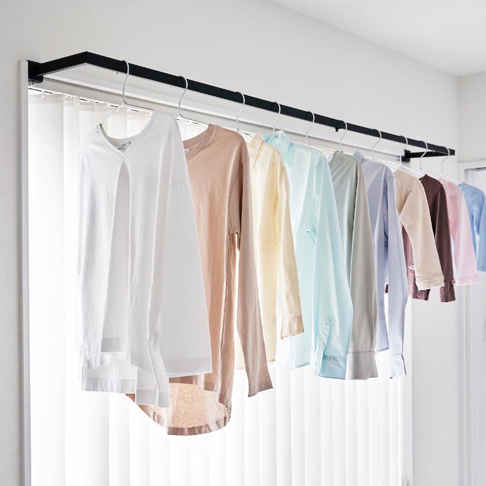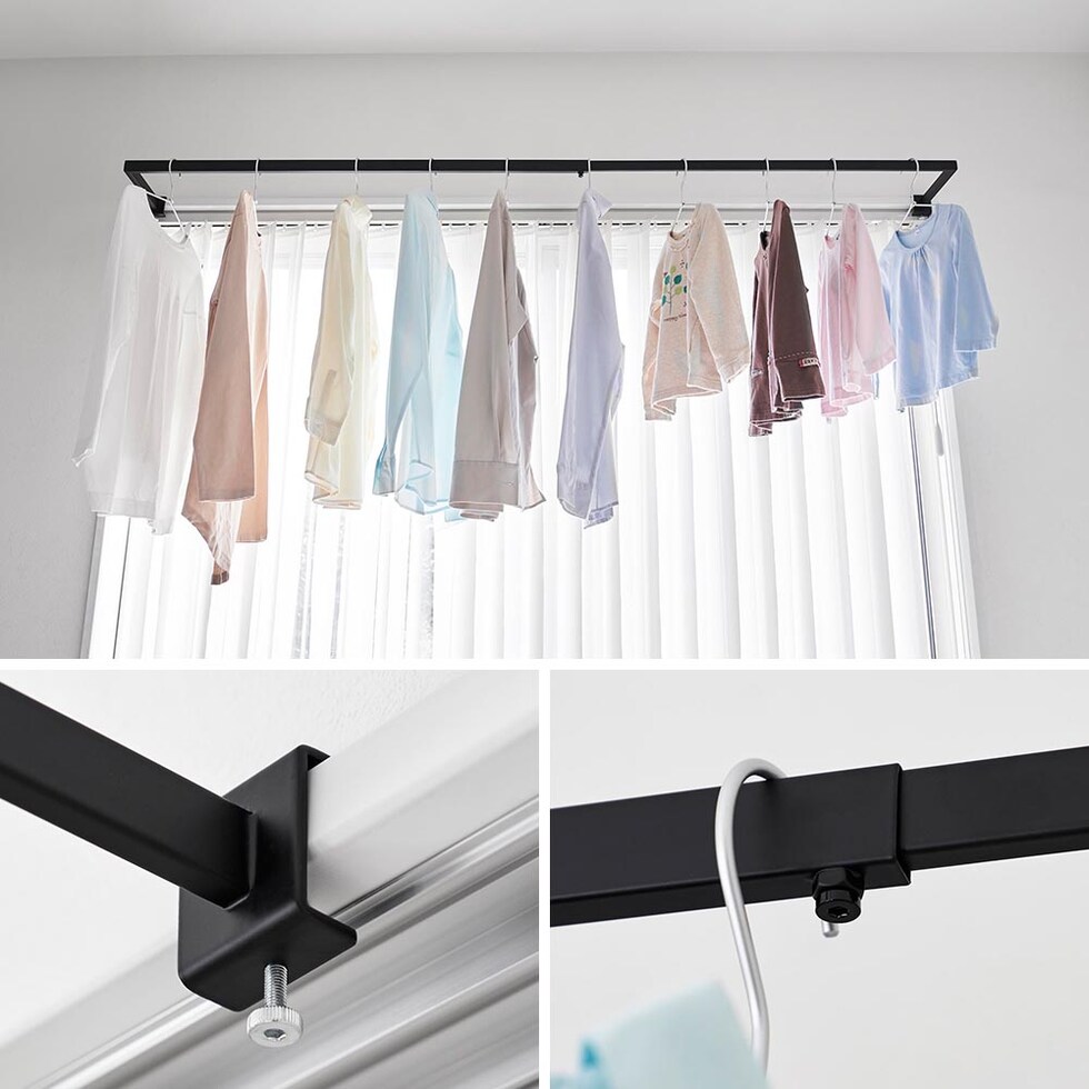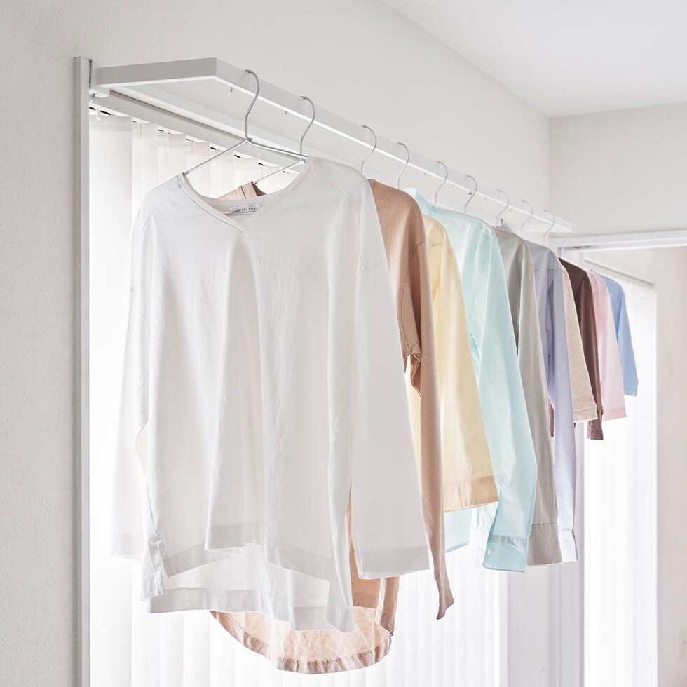 鴨居伸縮室内物干しハンガー タワー 奥行ワイド 鴨居や窓枠に設置するだけで室内物干しスペースができる 伸縮式の物干しハンガー 鴨居やスライド扉の枠・窓枠などに設置するだけで室内物干しスペースができる、便利な伸縮式ハンガーです。 奥行きがあるので扉やカーテンを閉じた状態でも洗濯物が干せて、風通しも良くなることで乾きムラ防止になるのも嬉しいポイントです。ホルダー上部のピン(針)と下部の調節ネジで鴨居やスライド扉の枠・窓枠を挟み込み、付属の六角レンチで締めてしっかりと固定。ハンガーの幅は伸縮し、設置する場所に合わせて使えるので便利です。 ![]() ![]() ![]() ![]() ![]() ![]() ![]() ![]() ![]() ![]() ![]() ![]() |