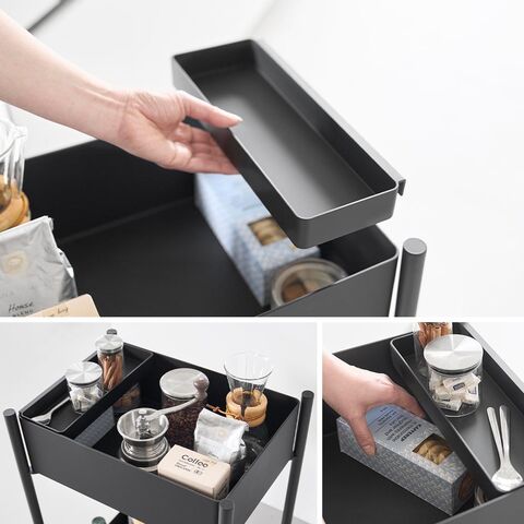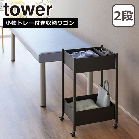 山崎実業 tower タワー 小物トレー付き収納ワゴン 2段 ブラック 10184 公式 オンラインショップ yamazaki【北海道・沖縄は990円加算】yaa4115-bk
