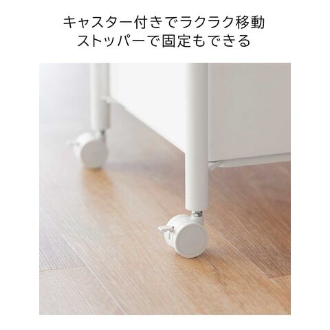 品質表示 棚・支柱:スチール(粉体塗装) バスケット・小物トレー:ABS樹脂 キャスター:ナイロン |