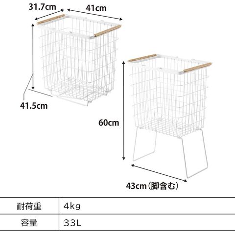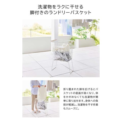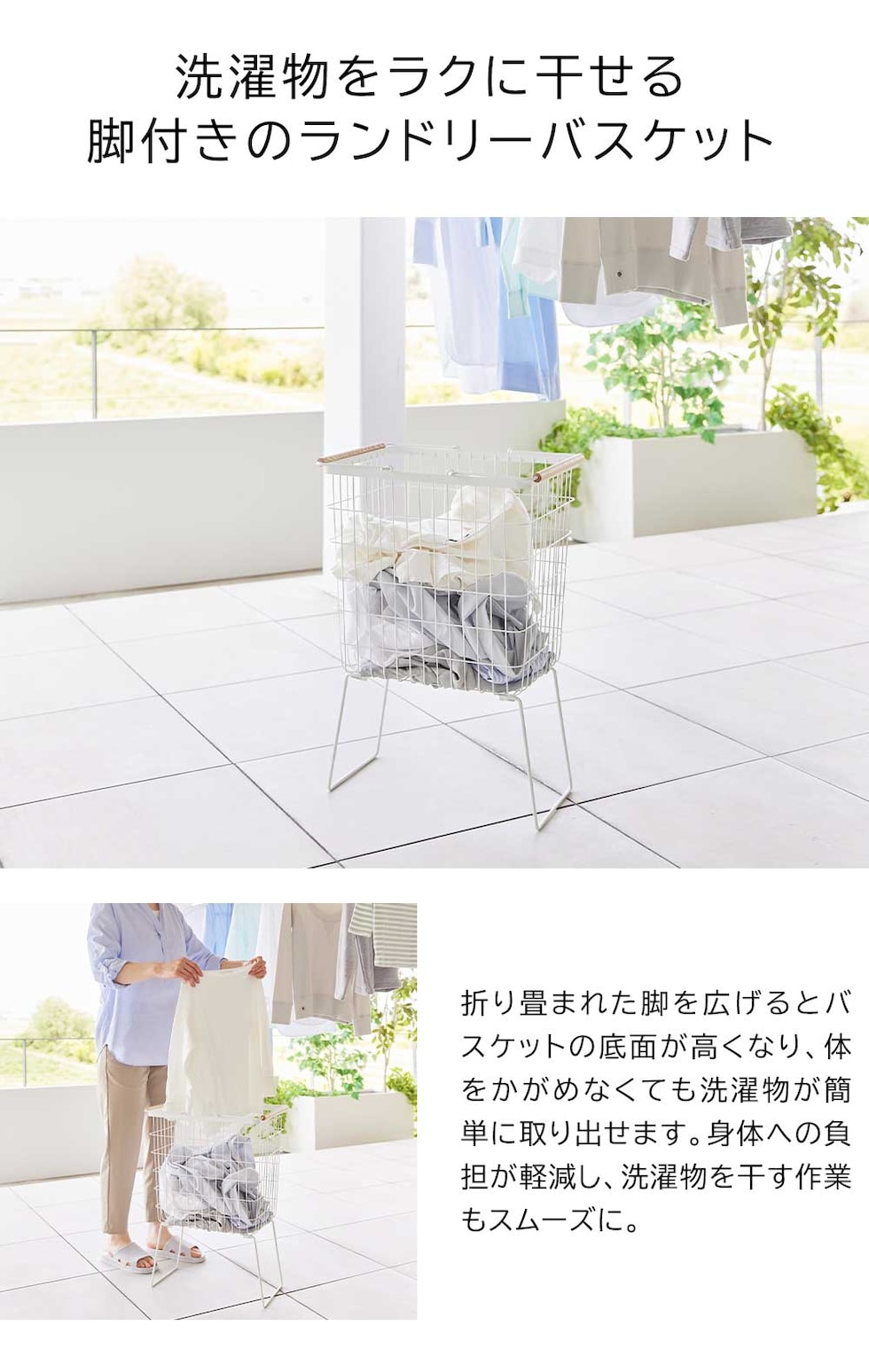 山崎実業 tosca トスカ 折り畳み脚付きランドリーバスケット ホワイト 1464 洗濯かご 公式 オンラインショップ yamazaki【北海道・沖縄は990円加算】yaa4118-wh