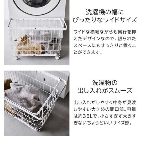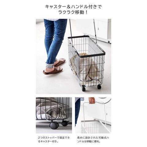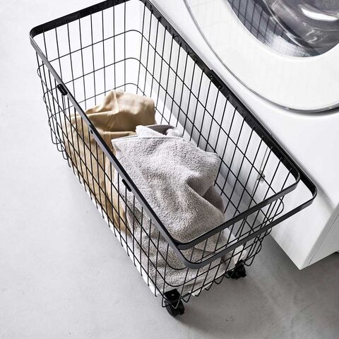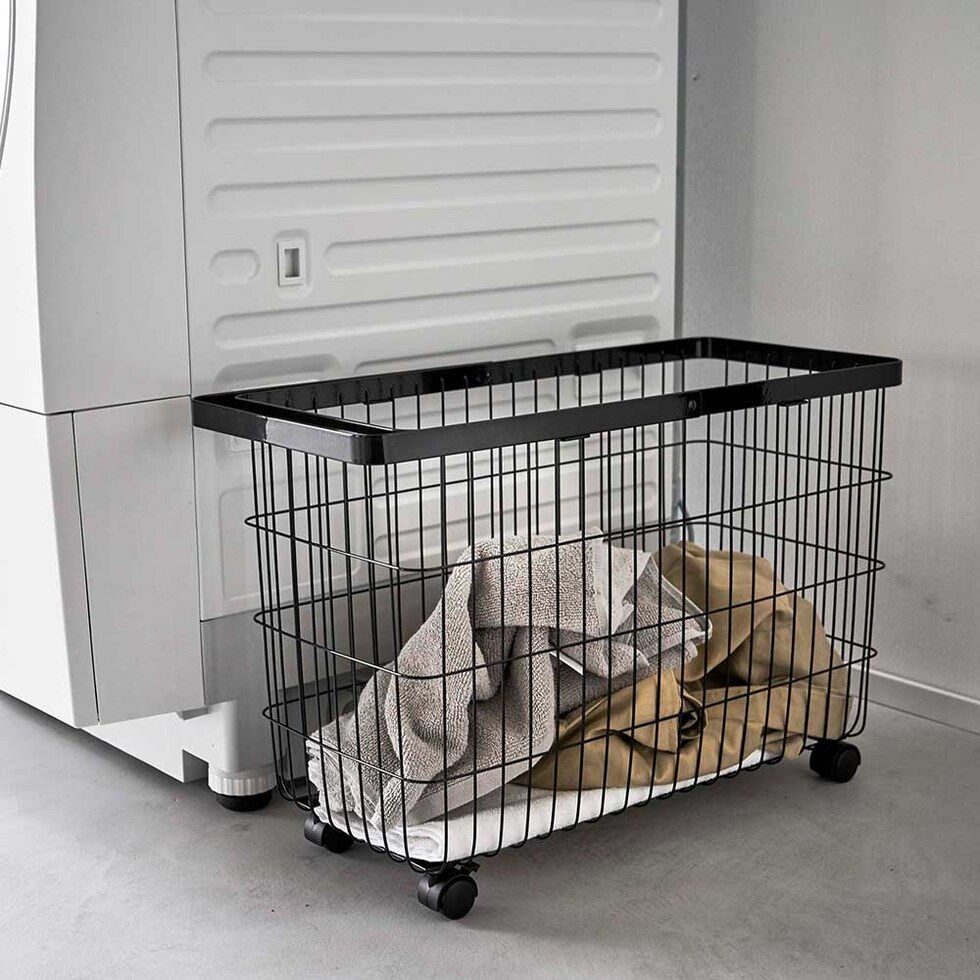 山崎実業 tower タワー ランドリーバスケット キャスター付き ワイド&ロー 35L ブラック6628 公式 オンラインショップ 洗濯かご 脱衣かご ランドリーワゴン ワイヤーバスケット 収納 【北海道・沖縄は990円加算】 yaa4120-bk