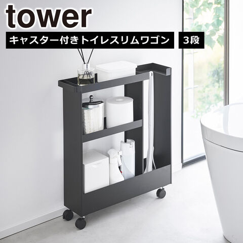山崎実業 tower タワー キャスター付きトイレスリムワゴン 3段 ブラック 1803 yamazaki 公式 オンラインショップ【北海道・沖縄は990円加算】yaa4123-bk