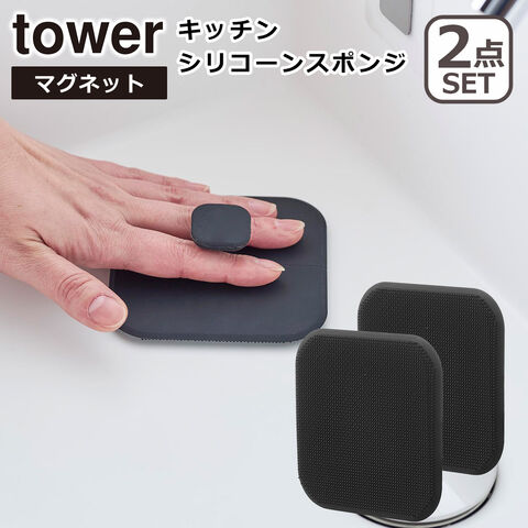 山崎実業 公式 オンラインショップ tower タワー マグネット キッチン用 シリコーンスポンジ 2点セット ブラック 1845 掃除 浮かせる収納 yamazaki yam3211-2p-bk