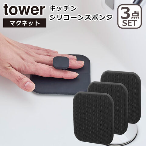 山崎実業 公式 オンラインショップ tower タワー マグネット キッチン用 シリコーンスポンジ 3点セット ブラック 1845 掃除 浮かせる収納 yamazaki yam3211-3p-bk