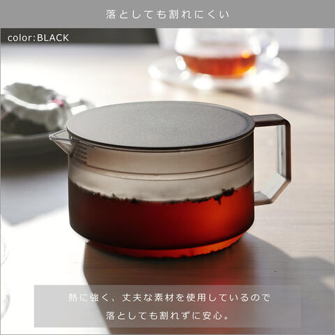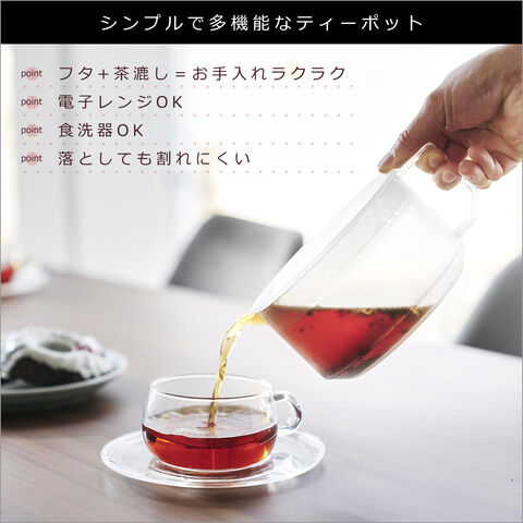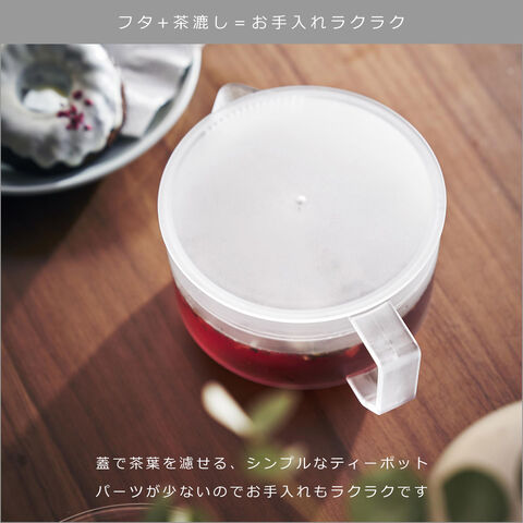 ・蓋で茶葉を濾せるシンプルなティーポット ・蓋とティーストレーナーが一体になっているのでパーツが少なくお手入れが簡単 ・熱に強く、丈夫なコポリエステル樹脂を使用 ・電子レンジ使用可 ・食洗機対応 |