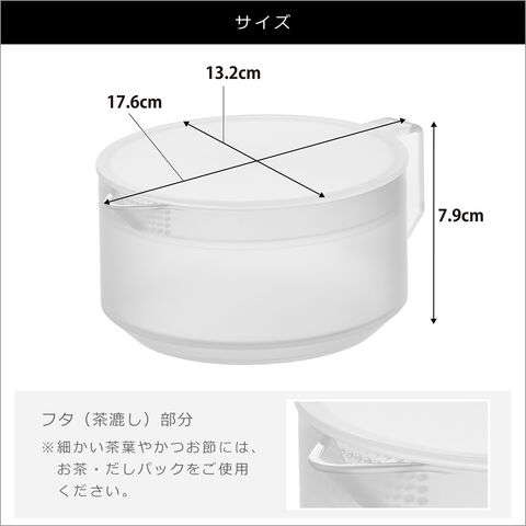 ・細かい茶葉やかつお節には、お茶・だしパックをご使用ください ・商品のサイズやスペックは、ブランドまたはメーカーにより公開されたものを参考に表記しています ・商品仕様は予告無く変更となる場合がございます ・イメージ画像には、該当商品以外の撮影小物なども写っておりますが、それらの小物は商品には含まれません ・光・画面の設定により、カラーが実際の商品と若干異なることがございます |