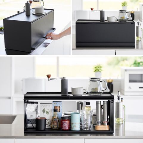 山崎実業 tower タワー 前が開くキッチンカウンター上収納ラック D24 1455 ブラック キッチンカウンター 収納 公式 オンラインショップ yamazaki 【北海道・沖縄は990円加算】 yam3229-bk