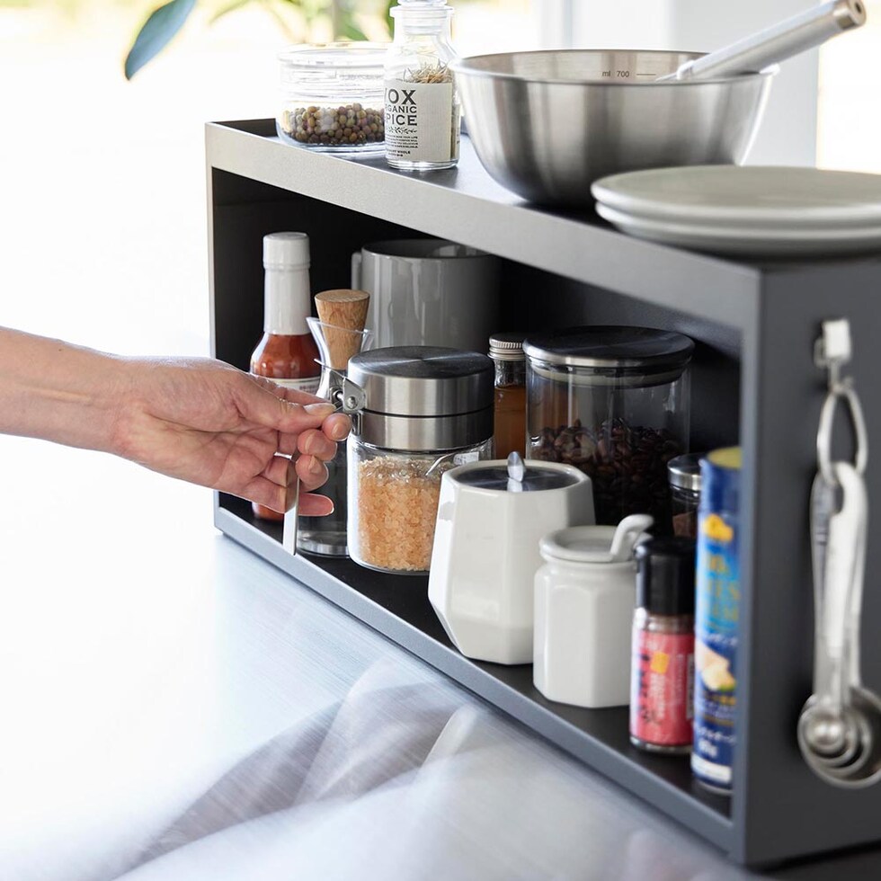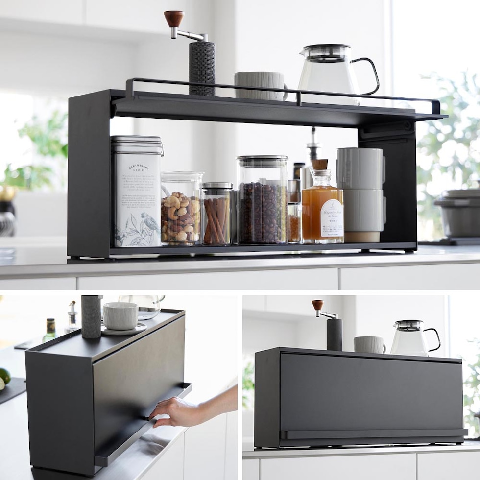 山崎実業 tower タワー 前が開くキッチンカウンター上収納ラック D15 1453 ブラック キッチンカウンター 収納 公式 オンラインショップ yamazaki 【北海道・沖縄は990円加算】 yam3230-bk