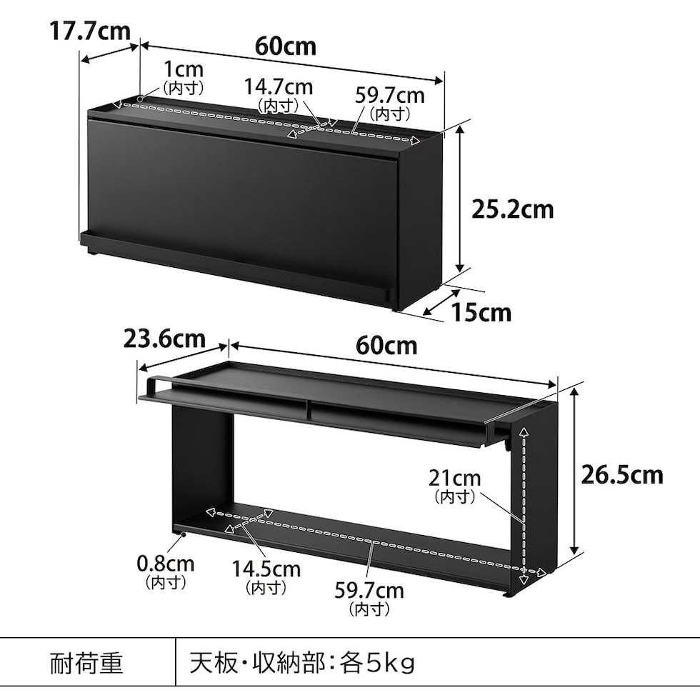 商品サイズ 扉を閉じた状態:W60×D17.7×H25.2cm 扉を開けた状態:W60×D23.6×H26.5cm |