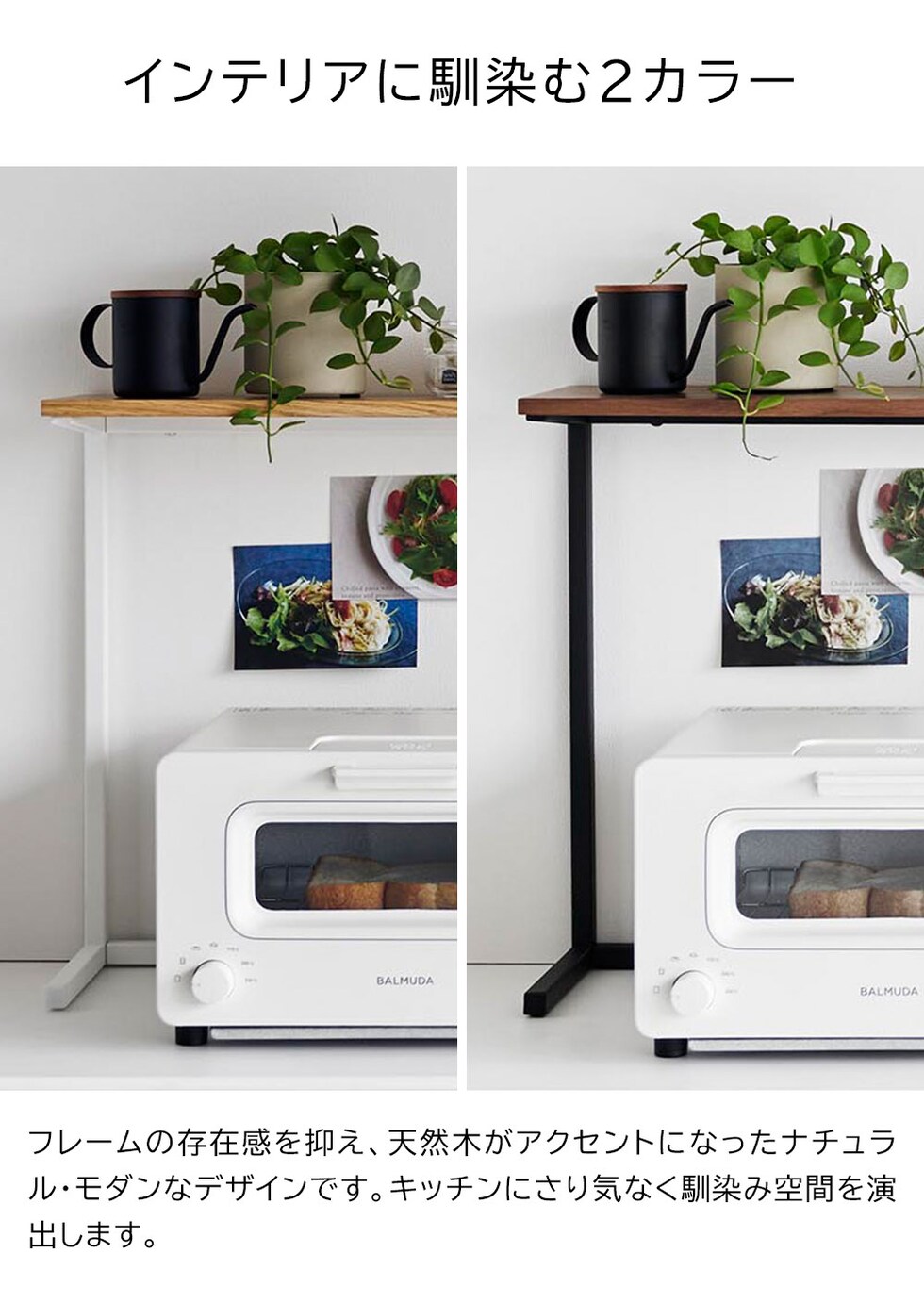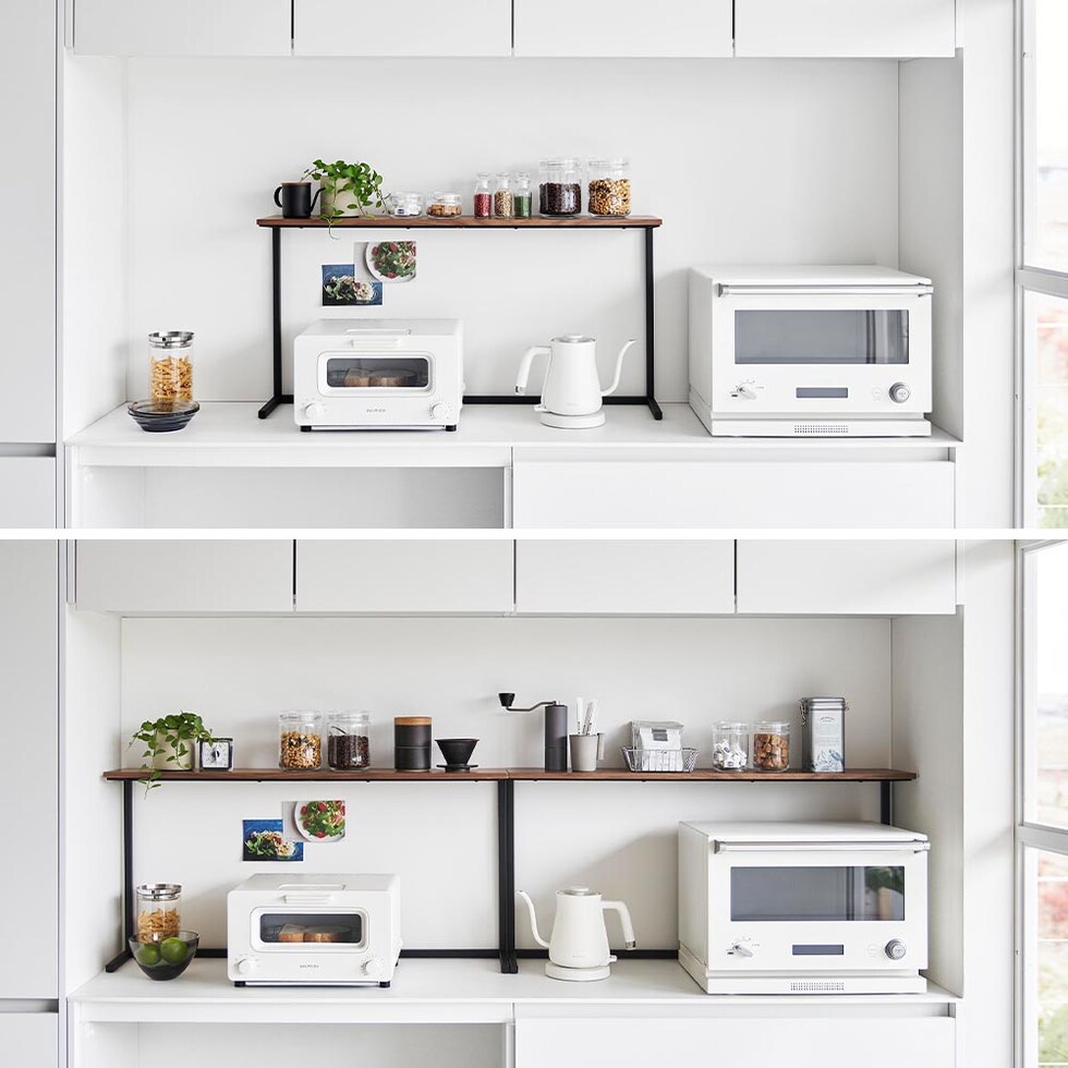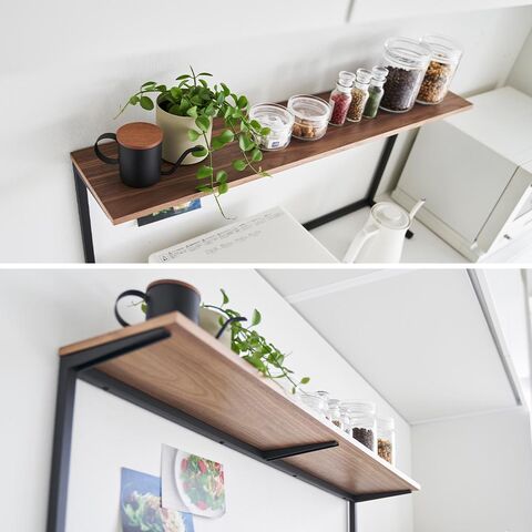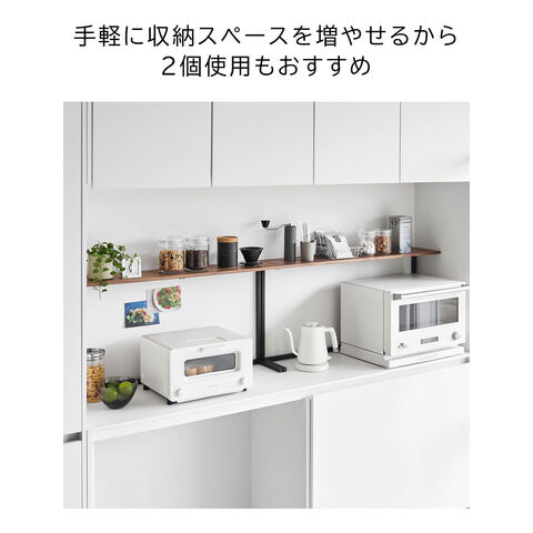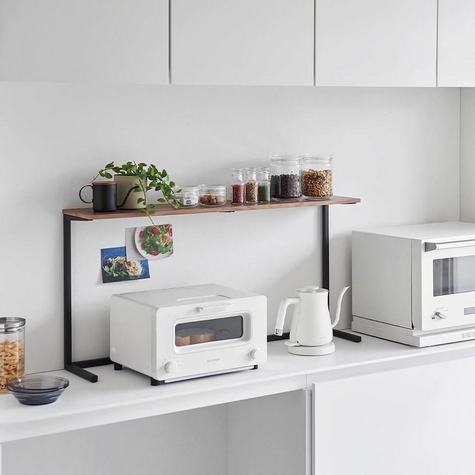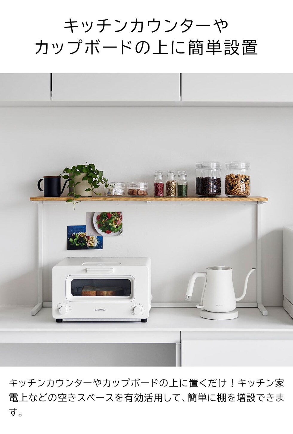 スペースを有効活用してディスプレイ収納できる 置くだけ設置の追加棚 キッチン家電上の空きスペースを活用できるシンプルな形状の棚です。 壁面にネジ穴を開けたりすることなく、キッチンカウンターやカップボードの上に置くだけで簡単に設置できます。 六角レンチが付属されているので、すぐに組み立てられます。 フレームの存在感が少なく、ナチュラルな木製天板が映えるデザイン。 奥行き18cmと広く、耐荷重が7kgある天板なので、食器やお気に入りの小物をおしゃれにディスプレイ収納したり、グリーンなども安心して飾れます。 イメージとして複数個を使用した写真を掲載しておりますが、こちらは「キッチンカウンター上棚 タワー」単品でのお届けとなります。 |