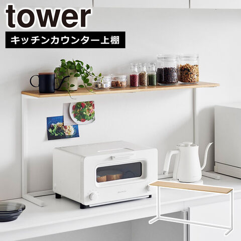 山崎実業 tower タワー キッチンカウンター上棚 幅90cm ホワイト 1692 キッチン 収納 棚 レンジ上 見せる収納 飾り棚 公式 オンラインショップ yamazaki 【北海道・沖縄は990円加算】 yam3231-wh