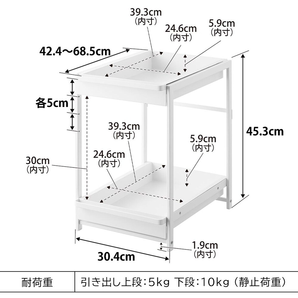 山崎実業 tower タワー シンク下スライドラック 2段 ホワイト 1460 シンク下 収納 引き出し 公式 オンラインショップ yamazaki 【北海道・沖縄は990円加算】 yam3232-wh