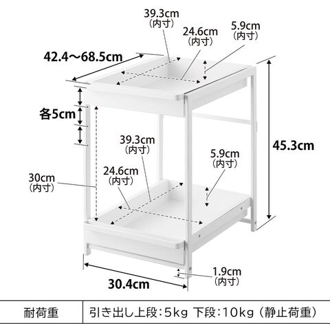 耐荷重 引き出し上段:5kg 下段:10kg (静止荷重) |