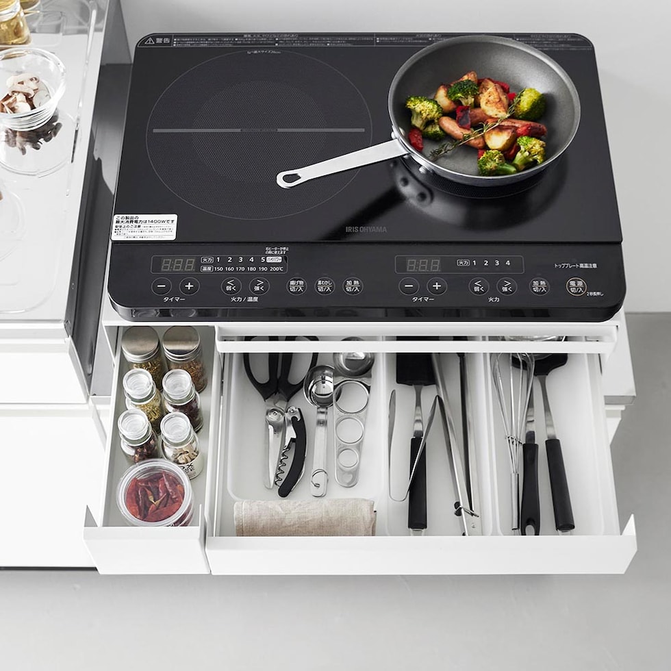 | IHクッキングヒーターラック タワー 引き出し&スライドテーブル |
