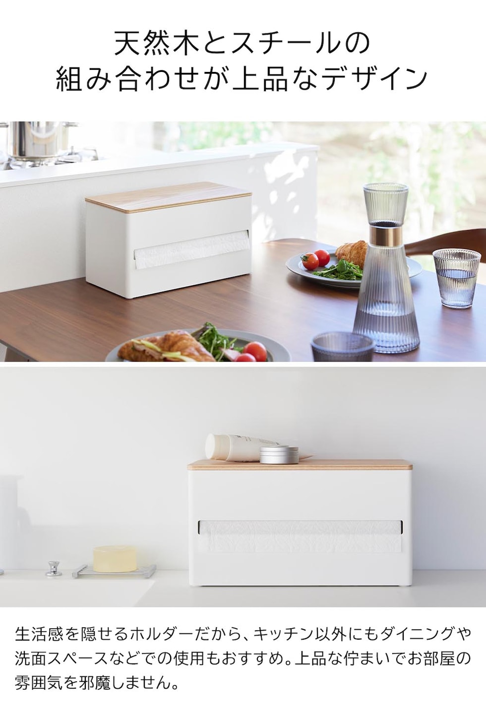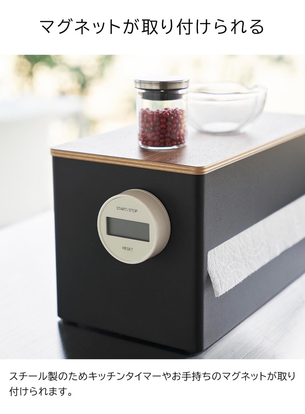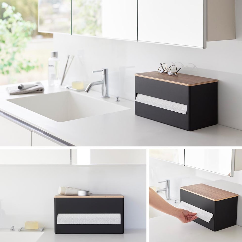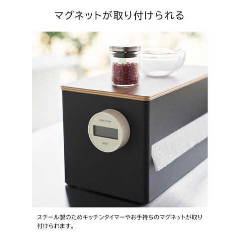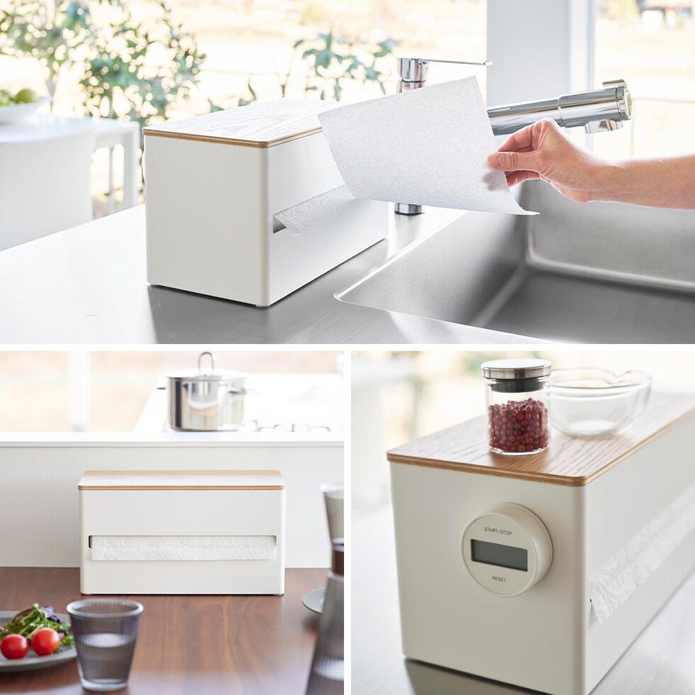 ロールタイプのキッチンペーパーを生活感を隠して収納できるキッチンペーパーホルダーです。