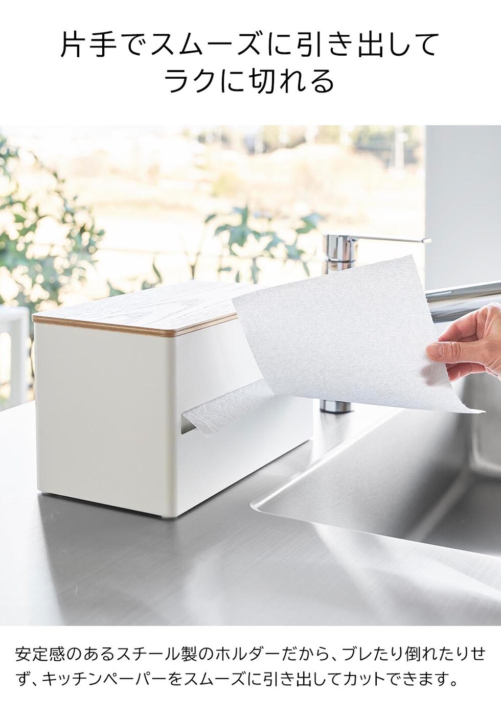 片手でカット隠せるキッチンペーパーホルダー リン L