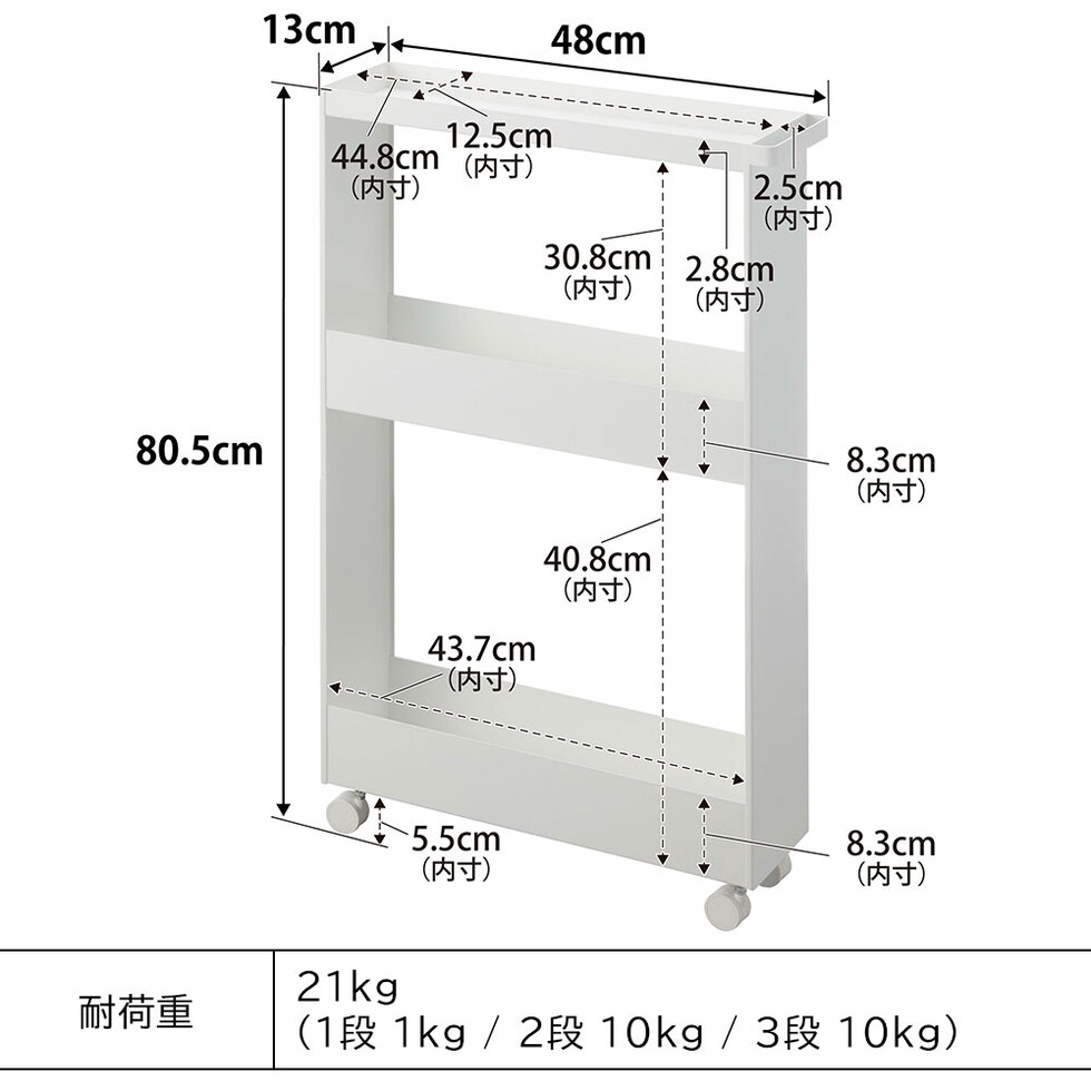 商品サイズ 【3段タイプ】W13×D48×H80.5cm(キャスター含む) |