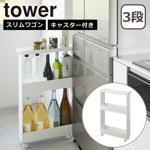 山崎実業 tower タワー キャスター付きスリムワゴン 3段 ホワイト 1804 yamazaki 公式 オンラインショップ キッチンワゴン ランドリー収納【北海道・沖縄は990円加算】yam3243-wh