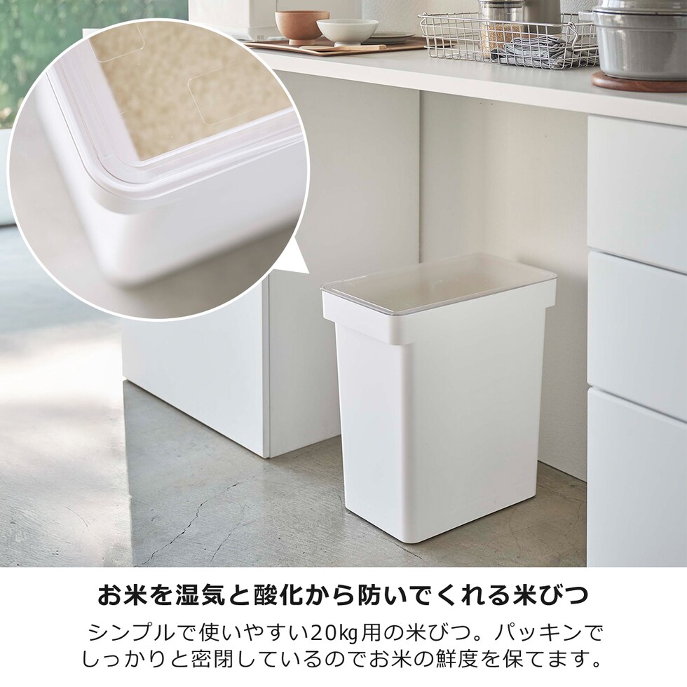 ・システムキッチンの引き出しに合う、スタイリッシュな20kg用米びつ ・パッキンでしっかり密閉、蓋をパチッとロックしておけばお米を湿気と酸化から防いでくれます ・お米袋なら10kg用をそのまま収納可能 ・持ち手とキャスター付きだから移動も楽々 ・部品は全て分解して洗浄可能 ・すり切り1杯で1合、段差部分で半合が測れる段々米計量カップ付 |