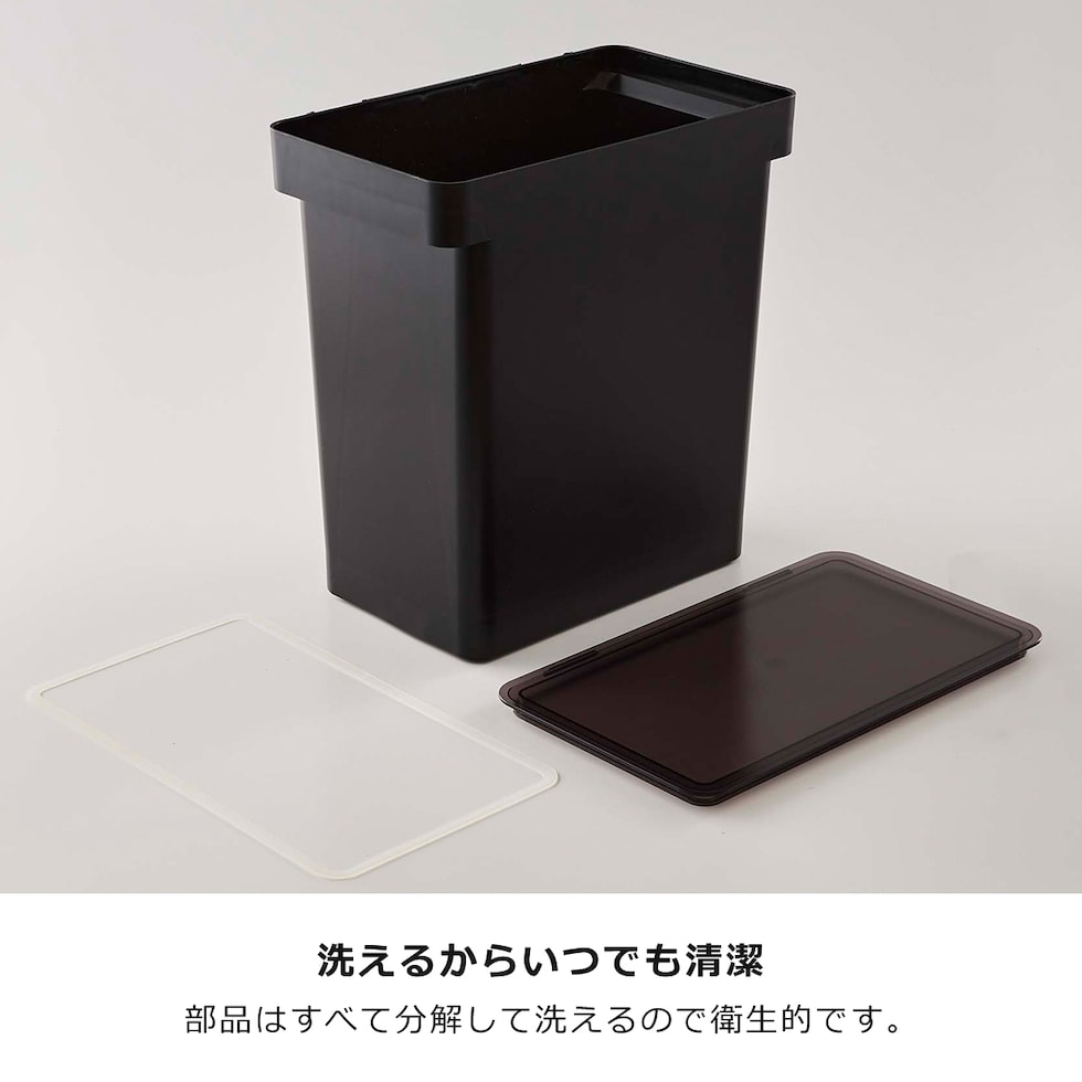 | 容器:ポリプロピレン / 蓋:ABS樹脂 / キャスター:POM樹脂 / パッキン:シリコーン |
