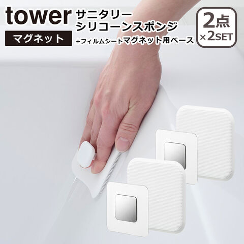 山崎実業 公式 オンラインショップ tower タワー マグネット サニタリー シリコーンスポンジ + フィルムシートマグネット用ベース ×2セット ホワイト 1842 掃除 浮かせる収納 yamazaki yam9026-2p-wh