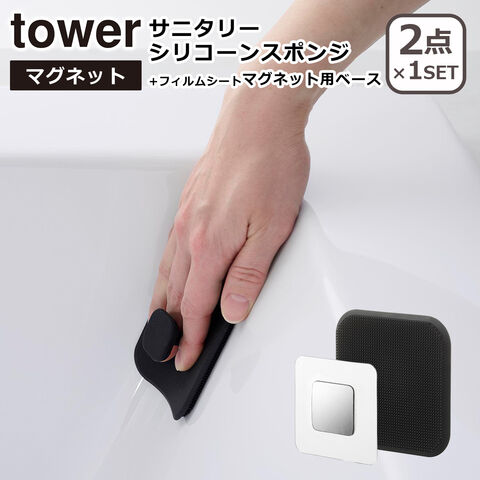 山崎実業 公式 オンラインショップ tower タワー マグネット サニタリー シリコーンスポンジ フィルムシートマグネット用ベース セット ブラック 1843 掃除 浮かせる収納 yamazaki yam9026-bk