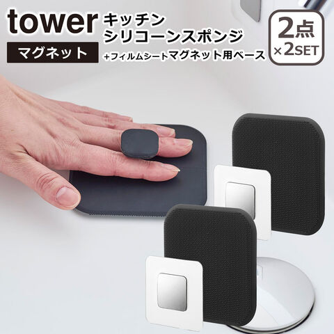 山崎実業 公式 オンラインショップ tower タワー マグネット キッチン シリコーンスポンジ フィルムシートマグネット用ベース ×2セット ブラック 1845 掃除 浮かせる収納 yamazaki yam9027-2p-bk