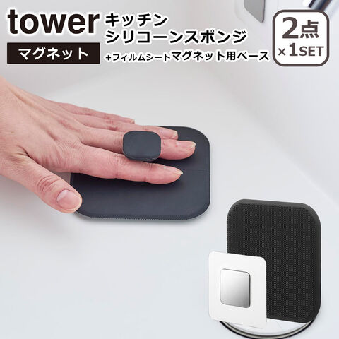 山崎実業 公式 オンラインショップ tower タワー マグネット キッチン シリコーンスポンジ フィルムシートマグネット用ベース セット ブラック 1845 掃除 浮かせる収納 yamazaki yam9027-bk