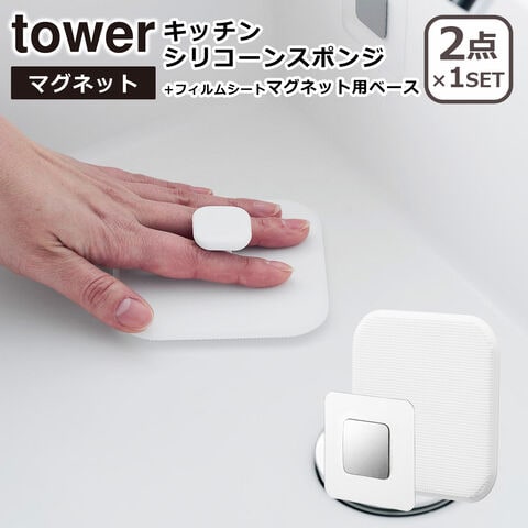 山崎実業 公式 オンラインショップ tower タワー マグネット キッチン シリコーンスポンジ + フィルムシートマグネット用ベース セット ホワイト 1844 掃除 浮かせる収納 yamazaki yam9027-wh