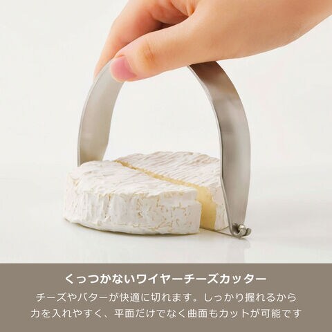 ・簡単カットでくっつかない、便利なワイヤーチーズカッター ・チーズやバター、ゆで卵などが快適に切れます ・しっかり握れて力が入れやすく、平面だけでなく局面にもカットが出来ます ・ワイヤー刃は卓上でも安全で、交換可能です |