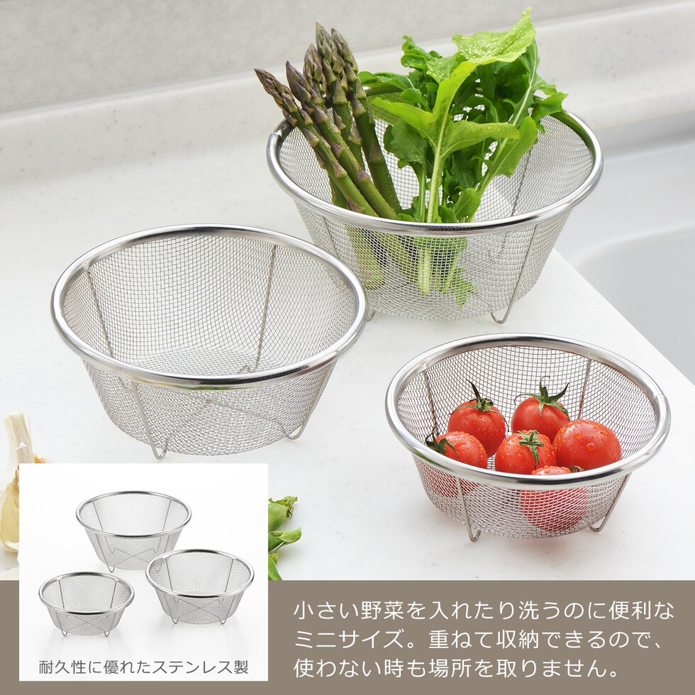・ミニトマトなどの小さい野菜を入れたり洗うのに便利 ・丈夫で衛生的なステンレス製 ・重ねて収納可能 |