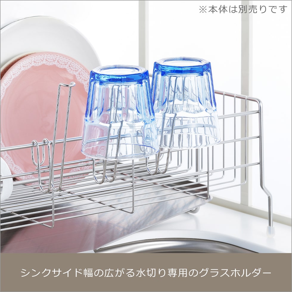 ・シンクサイド幅の広がる水切り用のグラスホルダー