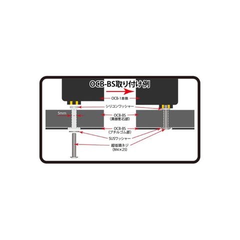 属シリコンゴムワッシャーによって、OCB-1とOCB-BS間の振動伝播をアイソレート。