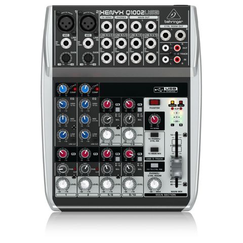 BEHRINGER Q1002USB XENYX アナログミキサーUSBオーディオインターフェースを搭載した10入力アナログ・ミキサー。モノ入力には音源に温かみを与える3バンド・ブリティッシュEQを搭載