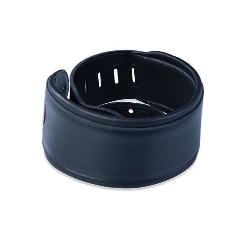 幅4 1/2インチ(約11.4cm)ガーメントレザー製のベースギターストラップです。