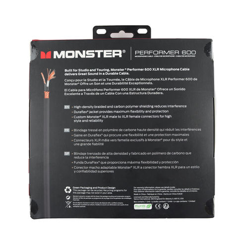 MonsterPerformer 600プロオーディオマイクケーブルは原音の持つ倍音を豊かに引き出します。特許技術であるタイムコレクト構造により自然なサウンドを実現。カーボン含有絶縁体やファイバーラップ伝導線により、環境ノイズへの高い抵抗力を実現しました。
