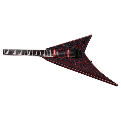 ボディに、メタルらしいセンセーショナルなライトニングまたは、モールクラックルフィニッシュを採用。パーロイドシャークフィンインレイ、カラーにマッチしたリバースタイプの尖ったコンコルド型6連ヘッドストック、革新的なボディデザインなど様々な仕様の中に、この楽器がジャクソンの“創造物”であることが明確に表れています。