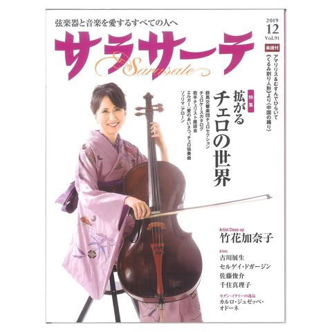 チェロの魅力、現在の情報や活躍中の人々、そして著名演奏家による名曲の誌上レッスンなど盛りだくさん。群馬交響楽団のチェロセクション、2019年ケースカタログ、若手チェリスト座談会(石井奏、岩崎弓夏、菅井瑛斗、山本栞路)、新倉瞳(愛のあいさつ)、宮田大(エルガー:Vc協奏曲)、水谷川優子(アローン)。そしてアンナー・ビルスマ追悼。