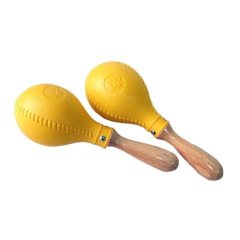LP Pro Maracasは黄色のプラスティックのシェルと木のハンドルを組み合わで、ブライトで大きなサウンドが得られます。