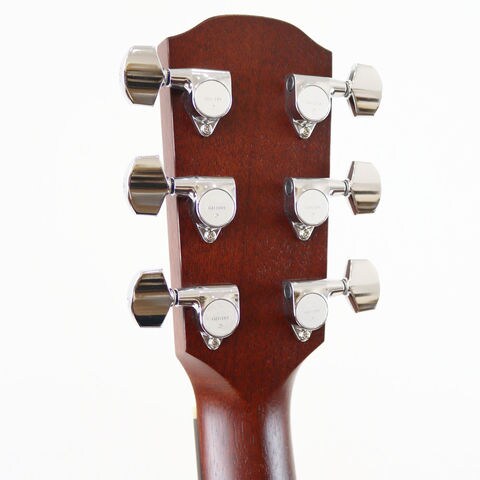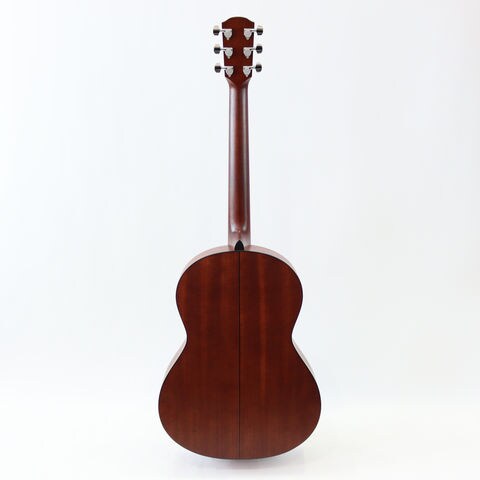 スプルース単板トップにマホガニーのバック&サイド、オープン・ポア・フィニッシュの木肌感を損なわないナチュラルな仕上げにK.Yairiオリジナルの技法によって実現した一体感の強い透明ピックガードが素材感を引き出しています。