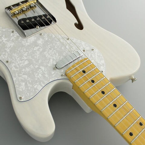 当モデルは、セミホロウ構造のアッシュボディ、メイプル指板、ホワイトブロンドカラーという組み合わせ。セミホロウタイプは通常より軽量かつ生鳴りも豊かで、最近人気です。