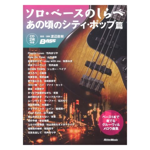 竹内まりや「Plastic Love」、山下達郎「Ride On Time」、大貫妙子「都会」などの名曲を筆頭に全21曲を収録。また模範演奏を収録したCDは2枚組を付録する大ボリュームの内容となっています。これまではクラシックを主とした選曲でバラード調のアレンジを行なうことが多かった『ソロ・ベースのしらべ』ですが、今回はシティ・ポップらしく緩急のついたグルーヴィなアレンジの曲も用意し、これまでのシリーズにはなかったスタイルにも挑戦しています。