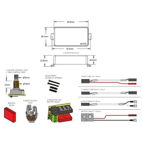 EMG-81はよく知られているU型ハムバッキング構造ですが、改良を重ね、ポールピースが スティールバーに、マグネットも小さめのセラミックマグネットに置き換わっています。この絶妙な組み合わせが織りなすfatなトーンと素早いアタックは、大音量のオーバードライブに最適で、MetallicaのKirk HammettやSlayerのKerry Kingに代表される メタル系の過激なサウンドを出すプレイヤーに絶大な支持を得ています。